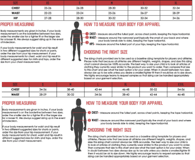 Click to view sizing chart.