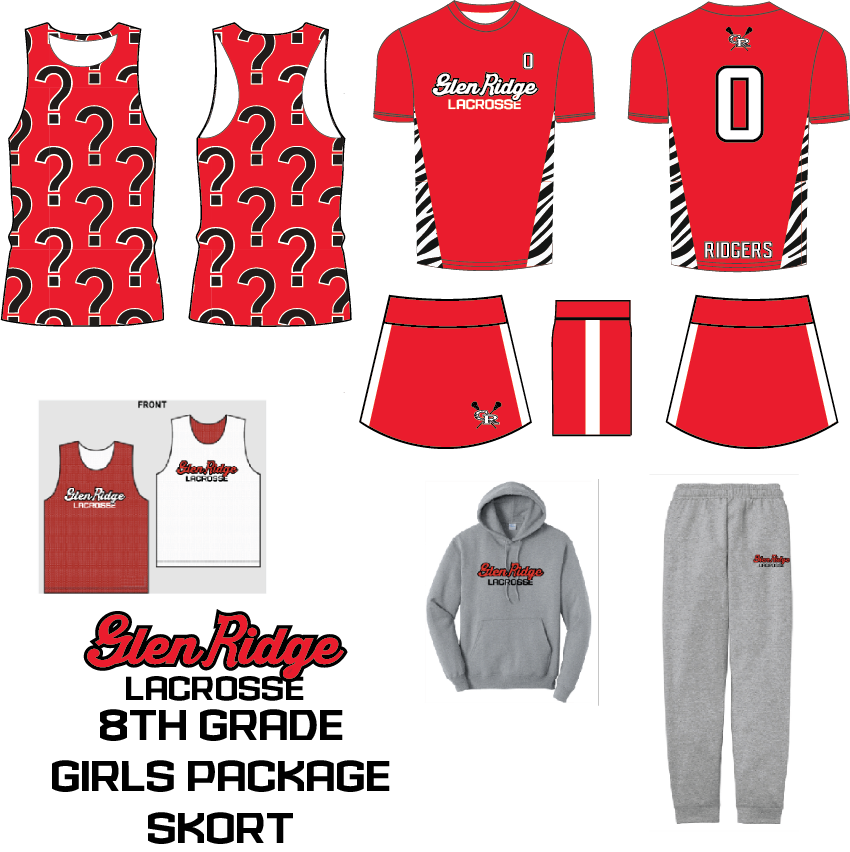 2026 GLEN RIDGE GIRLS 8TH GRADE ONLY UNIFORM PACKAGE AND PRACTICE PACKAGE WITH SKORT AND SWEAT PANTS AND HOODIE