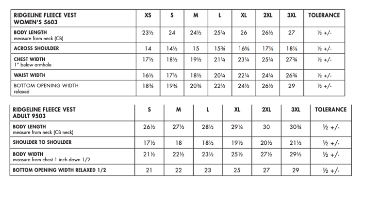 Click to view sizing chart.