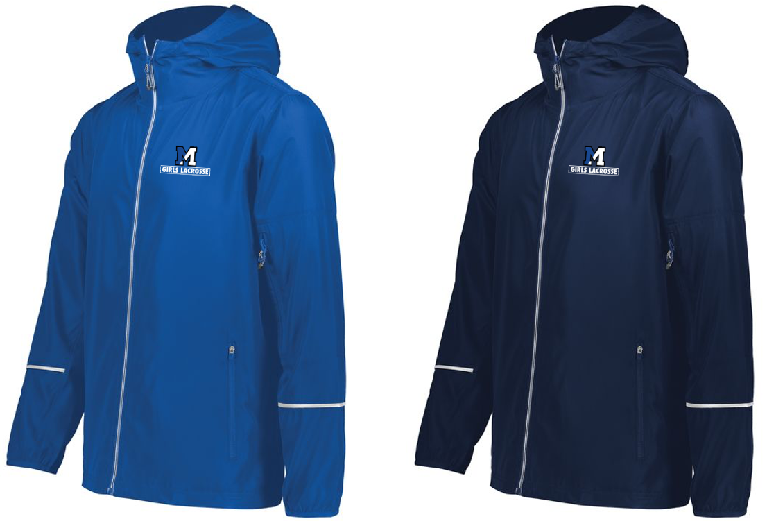 Stay warm and dry in the Packable Full Zip Jacket from Holloway. This water-resistant jacket features an adjustable hood with inside concealed cord locks, a reflective trim, and back vent with adjustable closure for full decoration access. Spandex bound cuffs and an adjustable bottom shock-cord closure make sure you keep the warmth in and the rain out.
